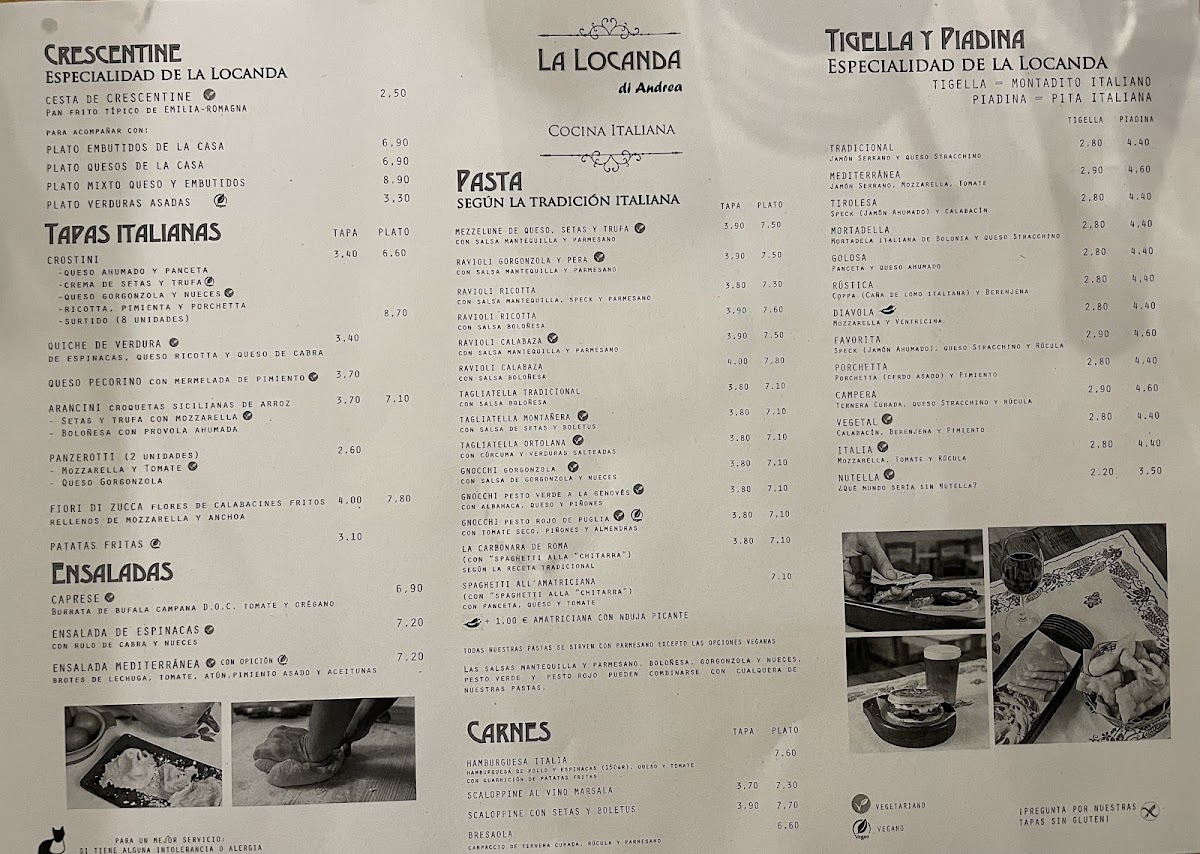 Introducing the menu at Restaurante La Locanda di Andrea, located in the heart of Sevilla, is an experience designed for Italian food lovers. This unique establishment fuses the charm of traditional Italian cooking with the vibrant concept of tapas, allowing patrons to savor a variety of dishes in smaller portions. Guests rave about the fresh, house-made pastas, with standout offerings like the luscious cheese mezzelune enriched with mushrooms and truffle, as well as the delightful pumpkin lasagna.